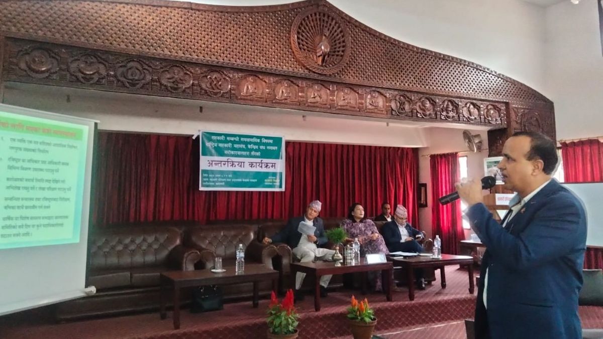 आइतबार सहकारी विभागले आयोजना गरेको ‘सहकारी सम्बन्धी समसामयिक विषयमा राष्ट्रिय सहकारी महासंघ, केन्द्रीय संघलगायत सरोकारवालाहरुसँगको अन्तरक्रिया’ कार्यक्रममा कार्यपत्र प्रस्तुत गरेका थिए । रजिष्ट्रार ढुङ्गानाले सहकारीपन र स्वनियमन कमजोर भएको कारण नियमन निकाय थप हुँदैगएको भन्दै सहकारी अनुगमनमा संघहरुको पनि सहयोग आवश्यक रहने बताए ।