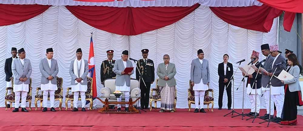 काठमाडौं । आज नवनियुक्त चार मन्त्रीहरुले पद तथा गोपनीयताको सपथ लिएका छन् । भूमि व्यवस्था, सहकारी तथा गरिबी निवारणमन्त्रीमा प्रा.डा.कुमार इङ्नाम नियुक्त भएका छन् । राष्ट्रपति कार्यालयमा आज आयोजित विशेष समारोहमा आज भूमि व्यवस्था, सहकारी तथा गरिबी निवारणमन्त्री इङ्नाम सहित नवनियुक्त श्रम, रोजगार तथा तथा सामाजिक सुरक्षामन्त्री राजेन्द्रसिंह भण्डारी, वन तथा वातावरणमन्त्री माधव चौलागाईं र महिला, बालबालिका तथा ज्येष्ठ नागरिकमन्त्री श्रद्धा श्रेष्ठलाई राष्ट्रपति रामचन्द्र पौडेलले सपथ गराएका हुन् ।
